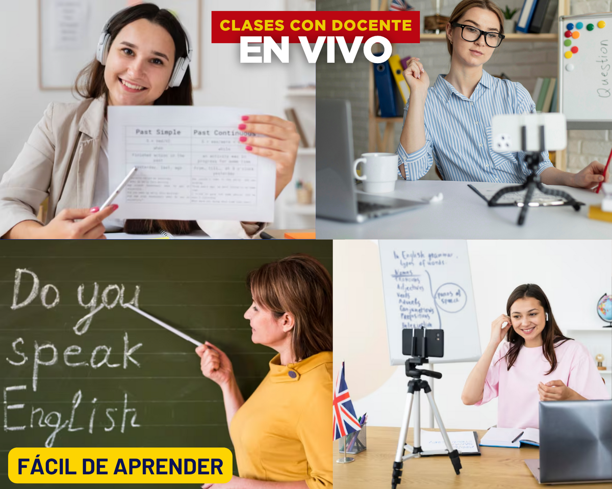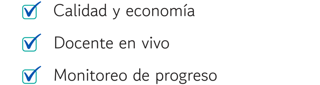 Son clases con docente en vivo, tu asistes a las clases desde la seguridad de tu hogar, en el computador, tablet o celular, nuestro docente explica e interactúa con nuestros estudiantes, responde preguntas, da recomendaciones y tips de aprendizaje, todo en vivo y en directo.