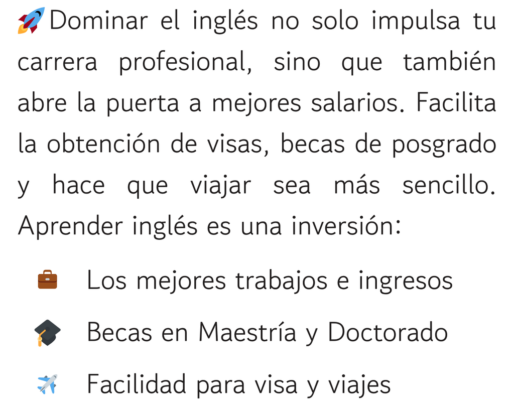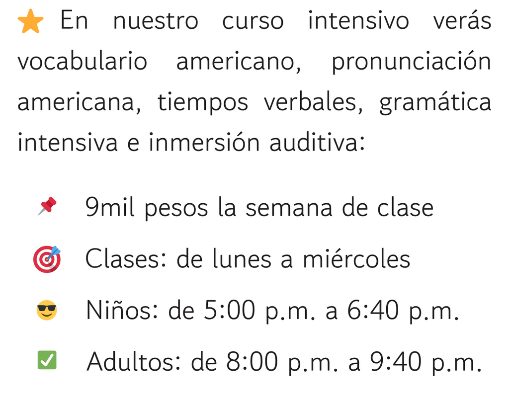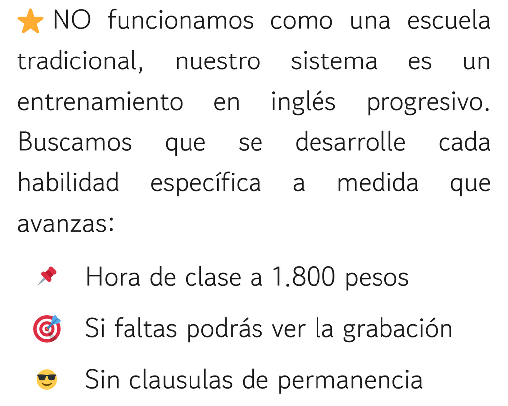 Nuestro método de Inglés es muy innovador, nos enfocamos en que tu aprendas de una manera didáctica, a tu ritmo y con un énfasis en la pronunciación de las palabras, para lograr que puedas hablar correctamente y entender cuando te hablen en inglés.