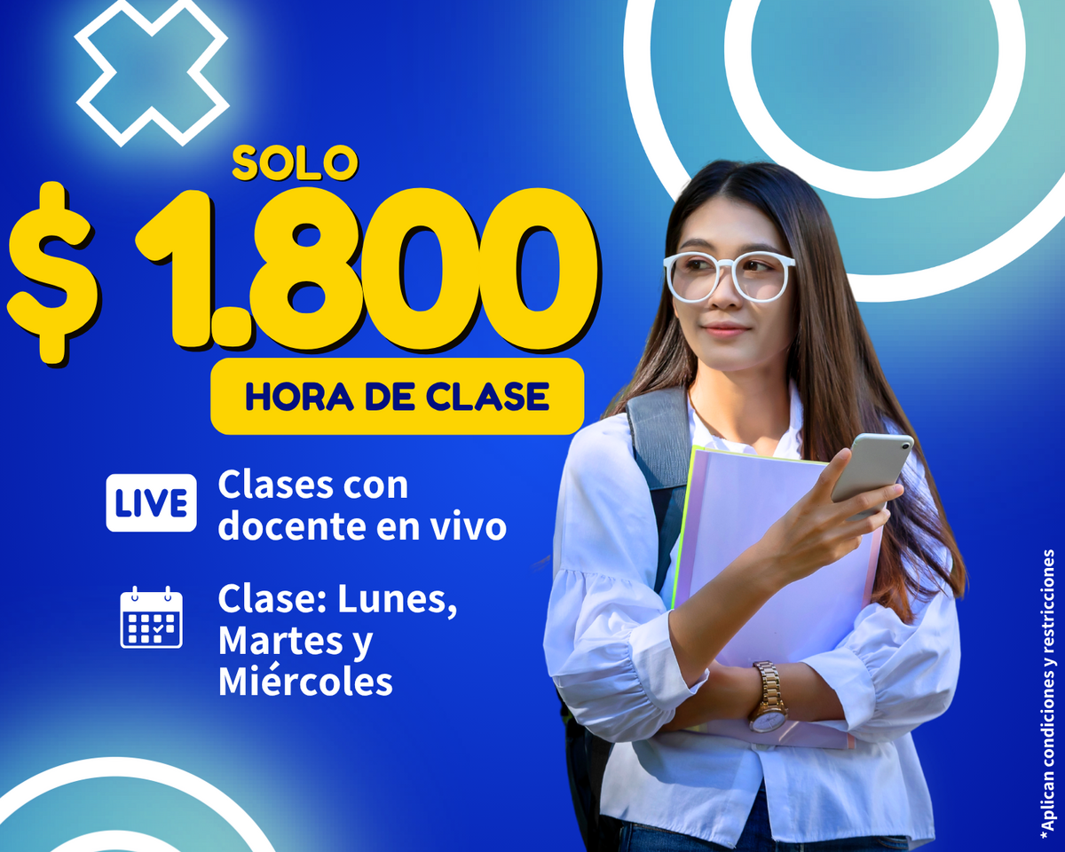 Son clases con docente en vivo, tu asistes a las clases desde la seguridad de tu hogar, en el computador, tablet o celular, nuestro docente explica e interactúa con nuestros estudiantes, responde preguntas, da recomendaciones y tips de aprendizaje, todo en vivo y en directo.