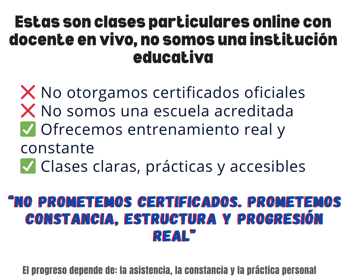 No, nuestras clases NO son grabaciones, son clases con docente en vivo y en directo, que explica e interactúa con nuestros estudiantes, responde preguntas, da recomendaciones y tips de aprendizaje, todo en vivo y en directo desde tu hogar, ahorrándote dinero y tiempo en transporte.